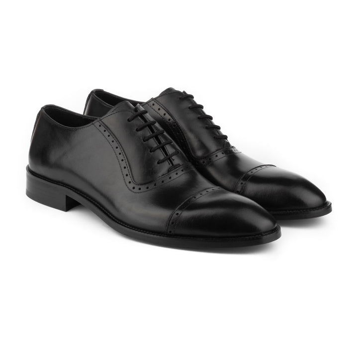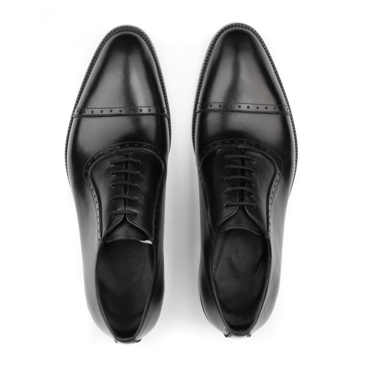 Vatrina Genuine Leather Cap Toe Oxfords - Black